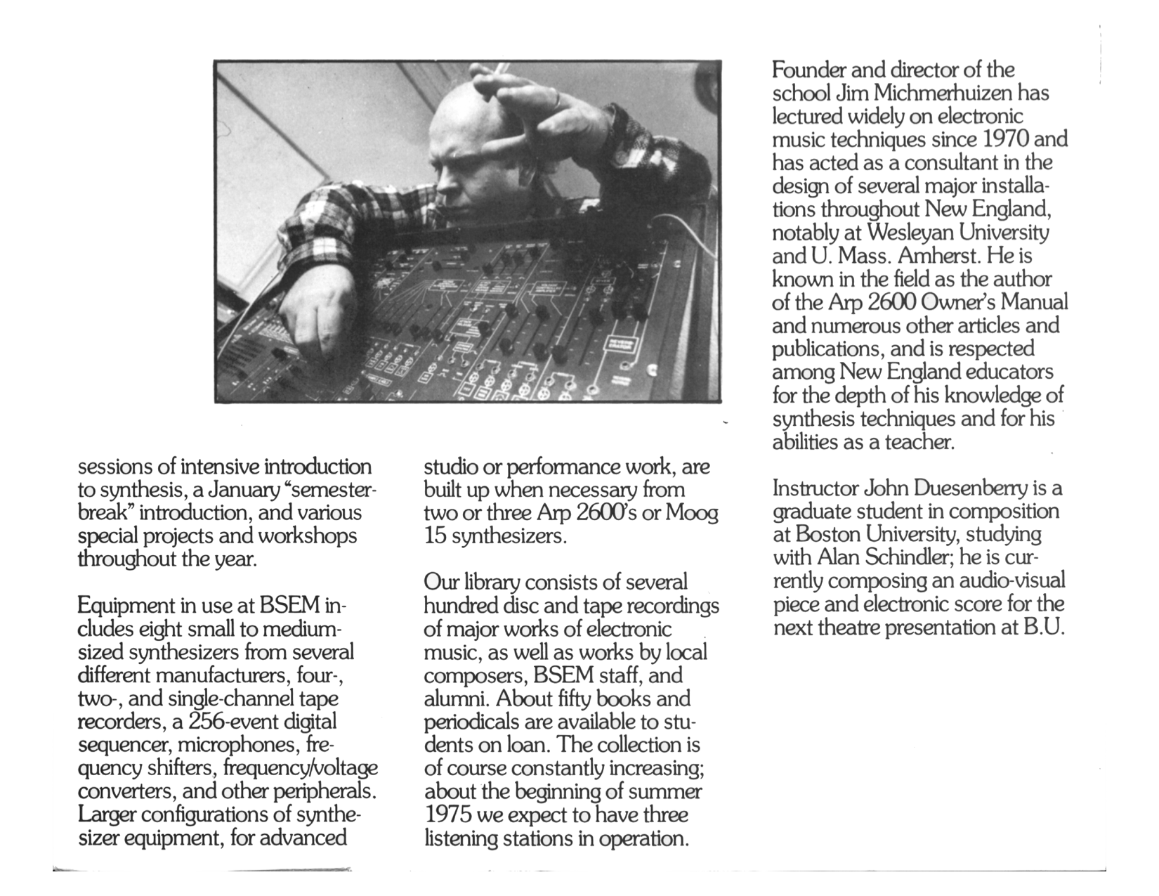 1974 BSEM brochure BSEM's founder JIm Michmerhuizen Sent in a PDF of BSEM's 1974 promotional brochure. This is the one that inspired many of us to come take a look - and stay to learn and enjoy! ![]() ![]() ![]() ![]() ![]() ![]() ![]() ![]() And here's Jim's original PDF The pictures feature scenes from the Dartmouth Street location, and for some of us, bring back some great memories! |
