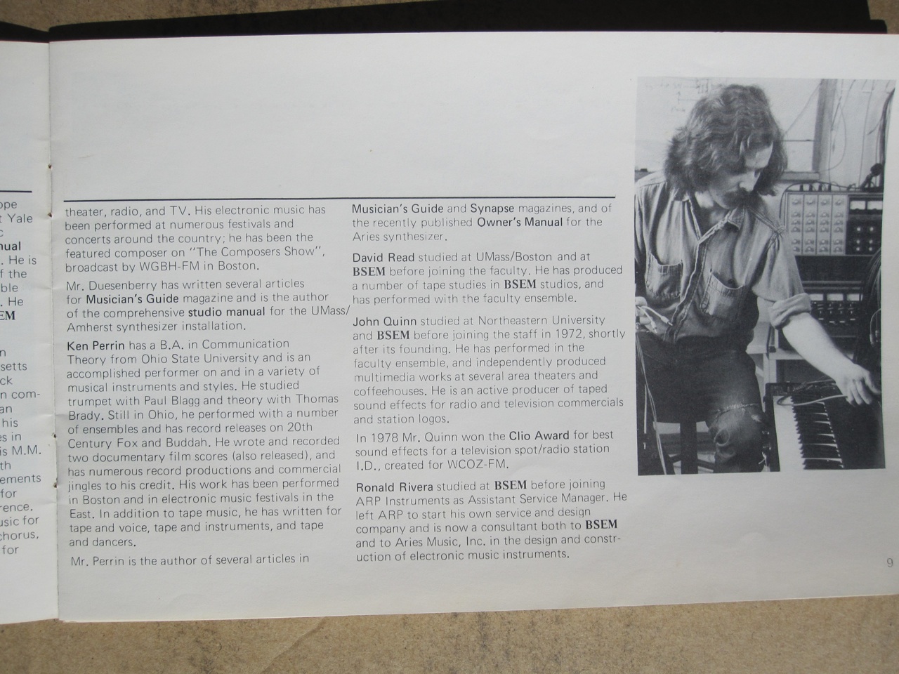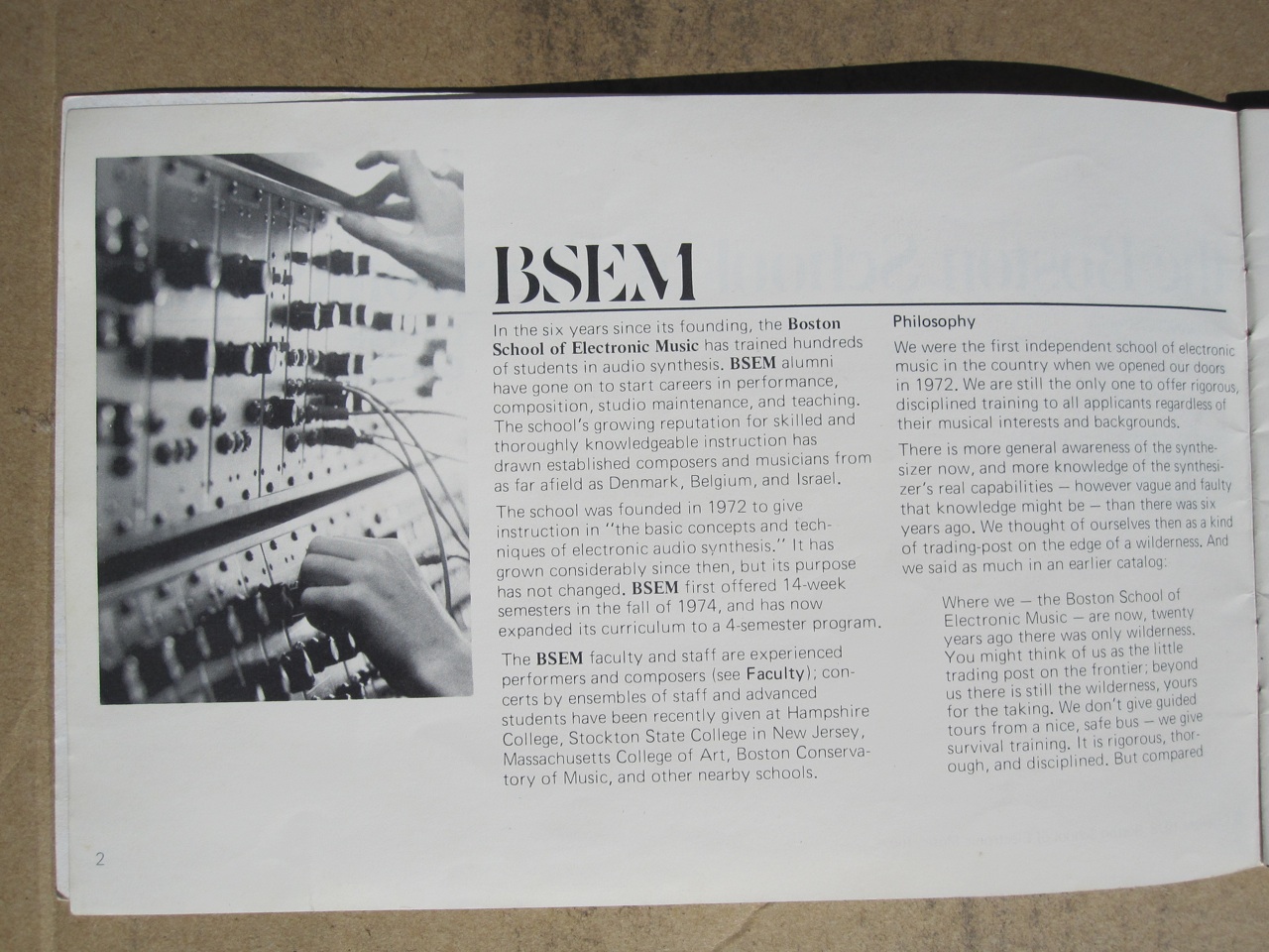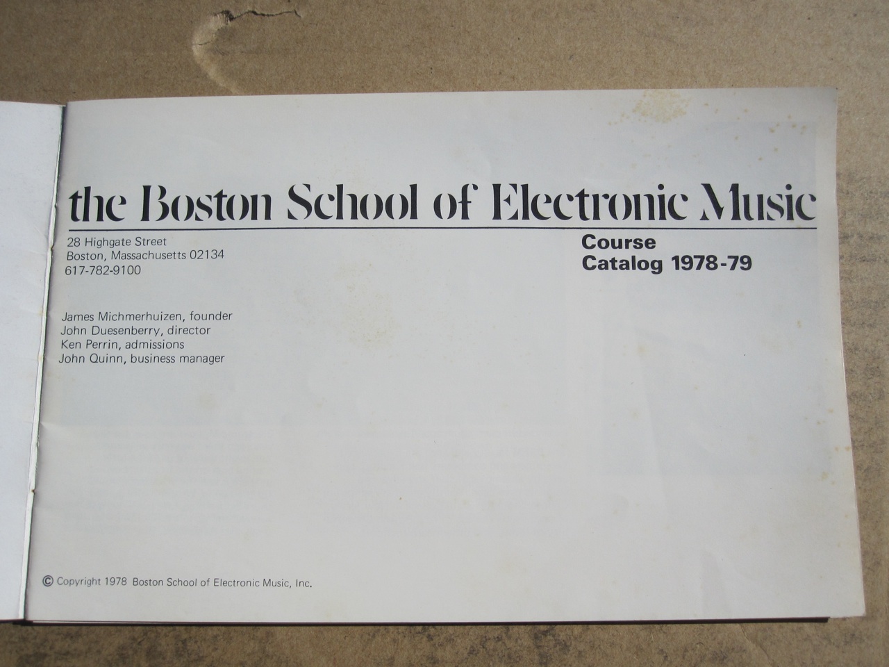 Snapshots of an old and battered copy of the 1978 Catalog for the Boston School of Electronic Music