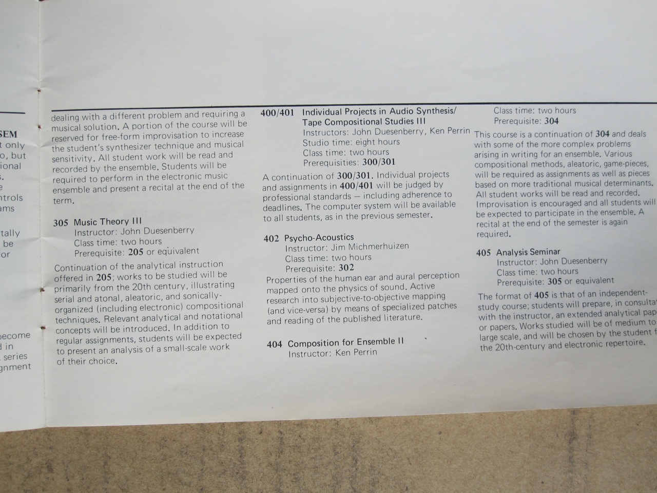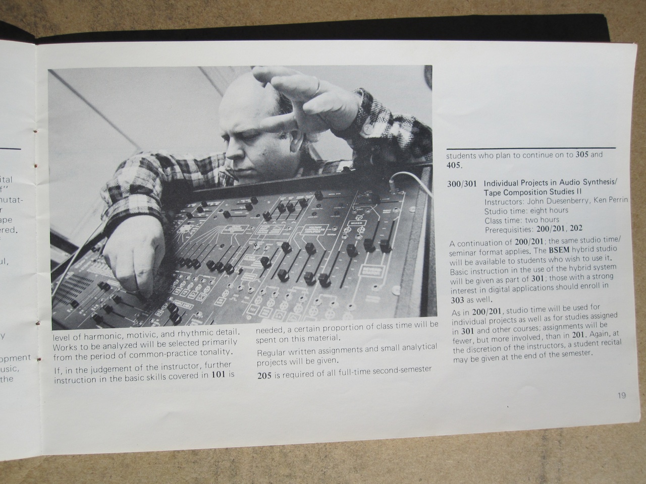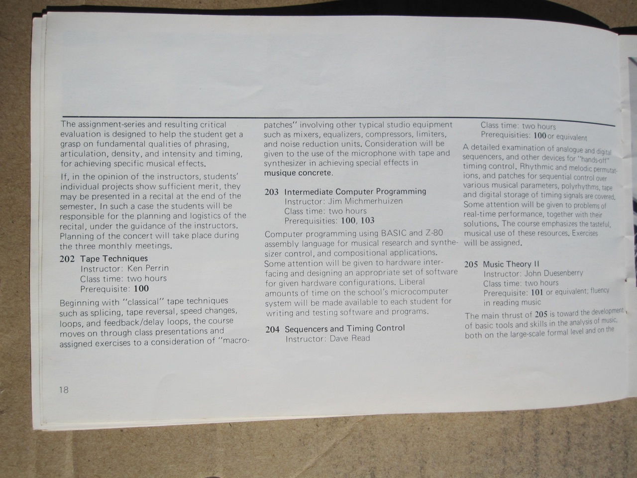 Snapshots of an old and battered copy of the 1978 Catalog for the Boston School of Electronic Music